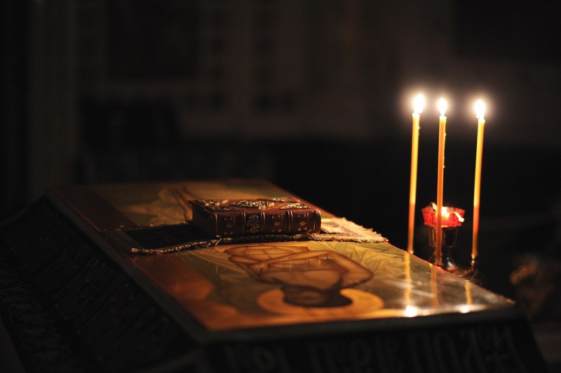 Святое Евангелие лежит на Плащенице в Храме Христа Спасителя на вечерне Великого пятка